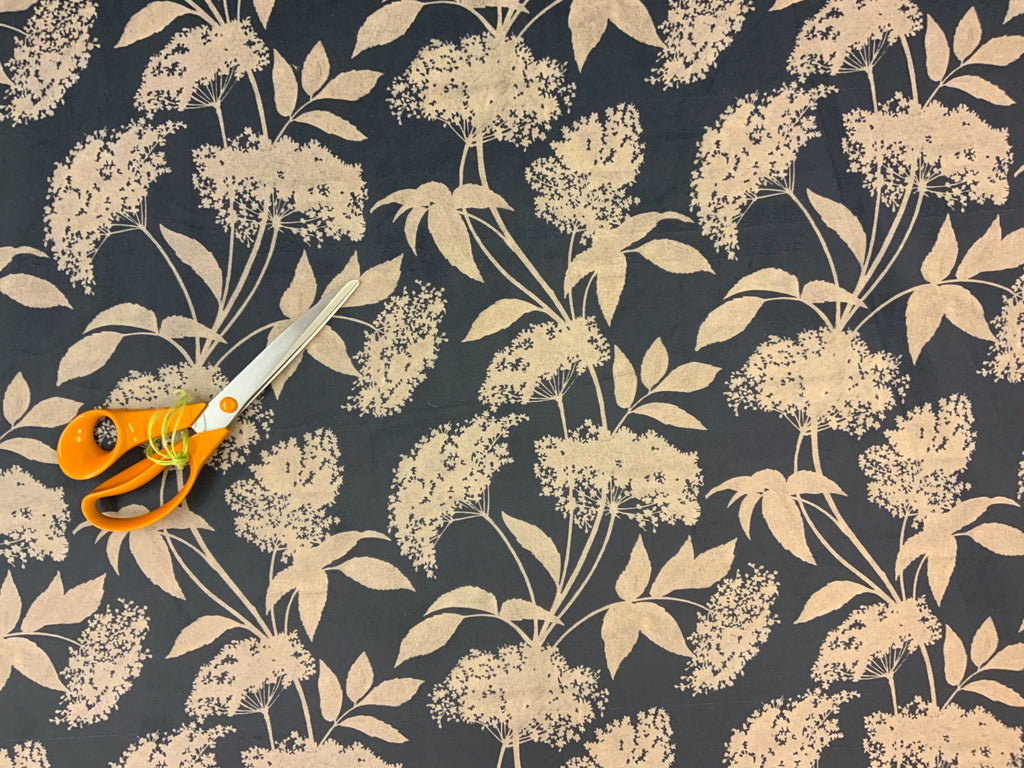 One of tour Textile Express Originals- a beautiful elderflower design. Painted by a local artist and turned into this beautiful velvet print!