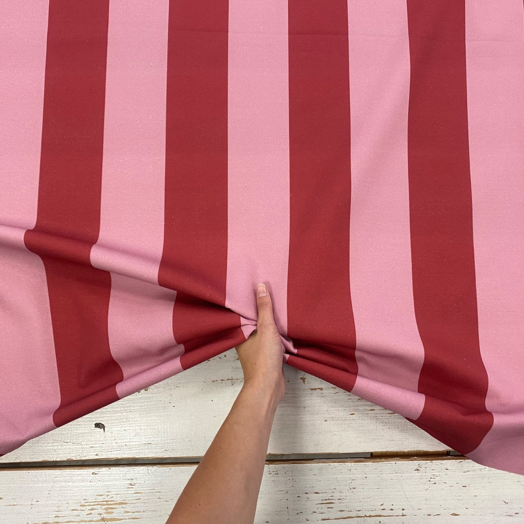 Available in a high-quality material finish, the contrasting pink and red stripes are ideal for trend-led interiors, stylish decorative upholstery, or bold fashion pieces. Loved by designers and DIY crafters across the UK, this colour combination is a confident choice for those who want to stand out.