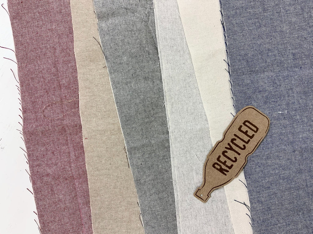 This recycled fabric from our 'Eco Range' meets the Global recycled standard. Using fibres made up of 60% polyester where the fibre is created from melting down plastic bottles to make the yarn.