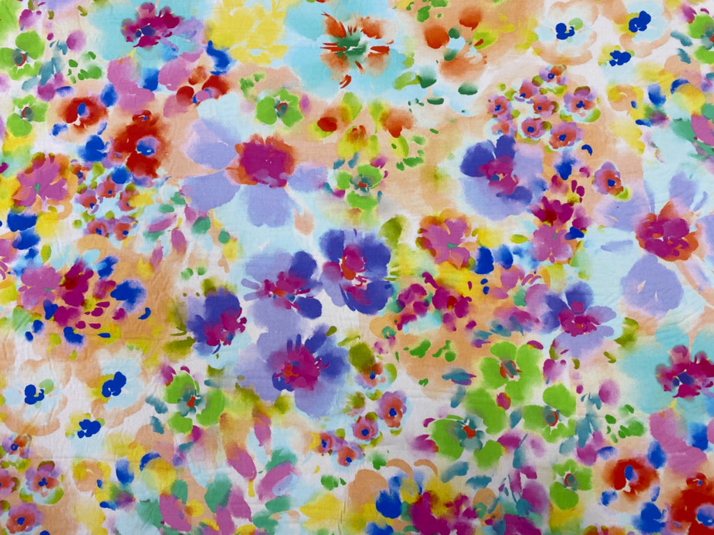 This stunning stretch viscose is the perfect fabrics for all your summer dressmaking needs. The vibrant watercolour pattern is printed on to a lovely soft drape base cloth perfect for dresses, blouses and skirts with the added benefit of some stretch for extra comfort.