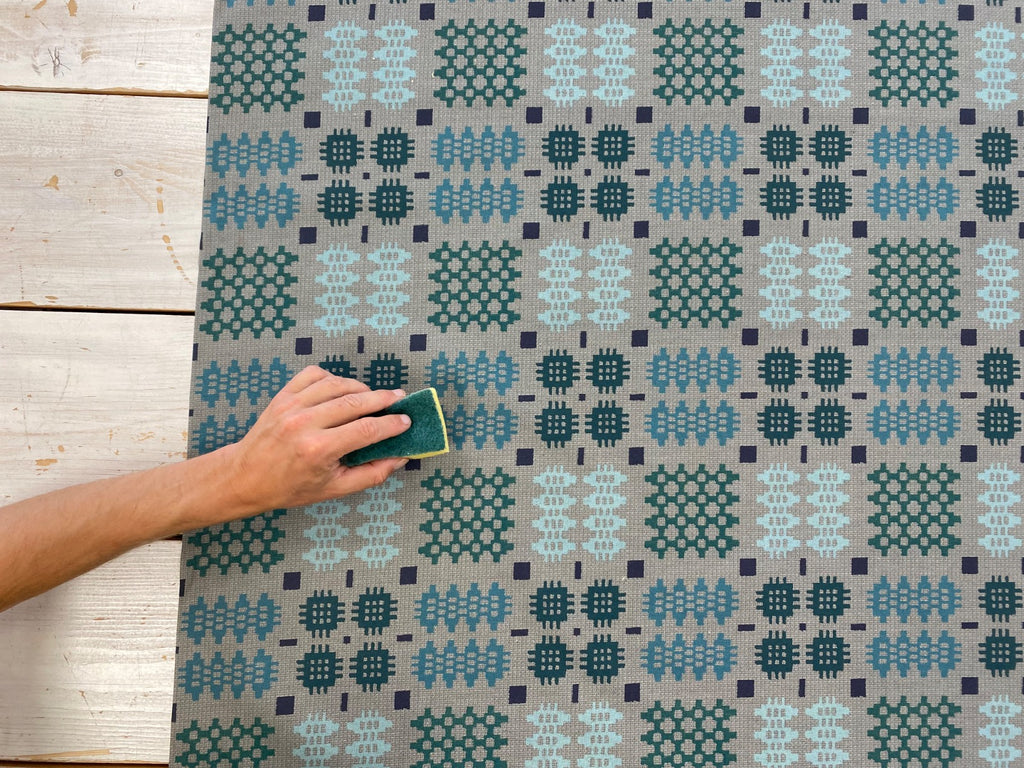 Oilcoth fabric, suitable for tablecloths, bags and aprons. Free samples available.