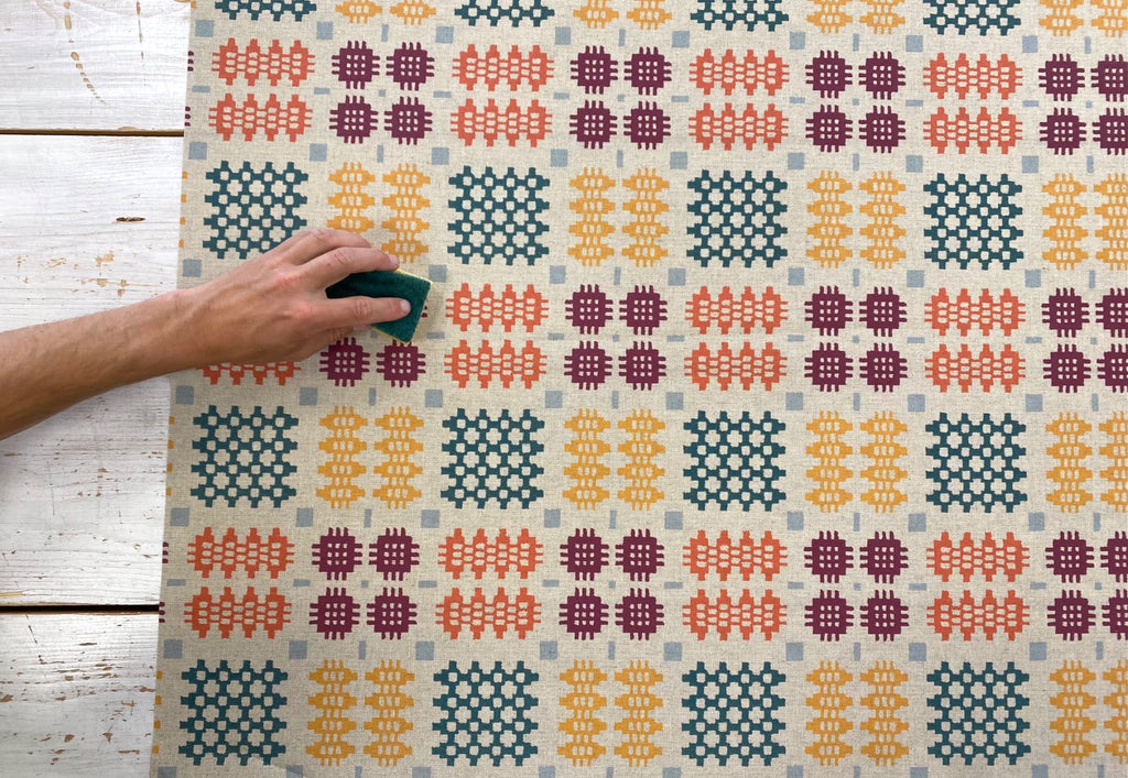 Oilcoth fabric, suitable for tablecloths, bags and aprons. Free samples available.